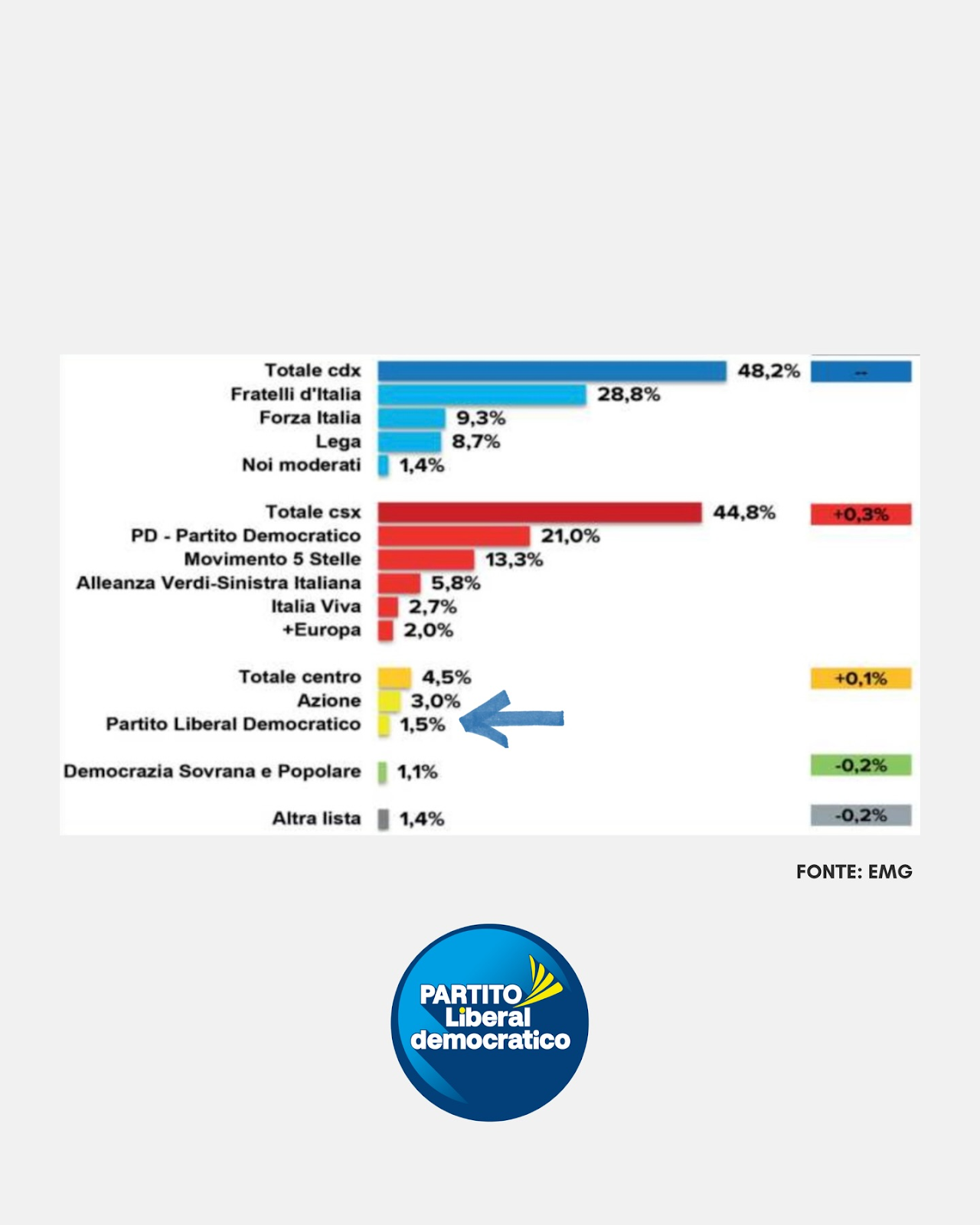 Nel frattempo il Partito Liberaldemocratico e il suo segretario risultano nuovamente presenti nelle rilevazioni settimanali, questa volta con EMG. È un segnale di continuità: il lavoro che stiamo portando avanti sui territori e nelle istituzioni inizia a tradursi in una presenza politica riconoscibile e monitorata con regolarità. La costruzione di una forza credibile passa anche da questo, passo dopo passo.